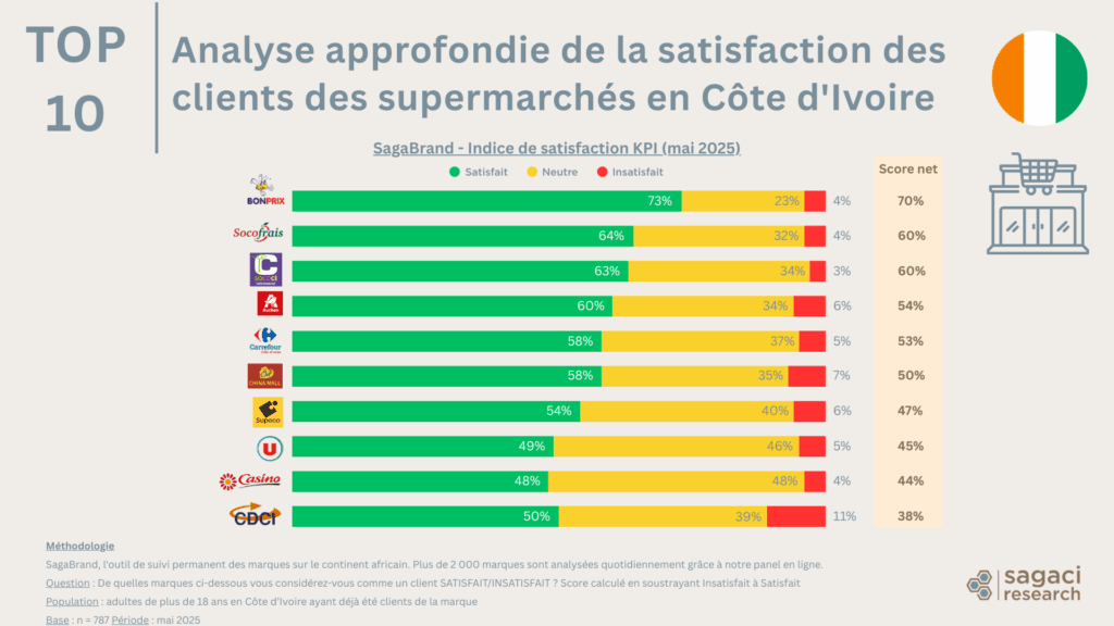 Ci-dessous, la liste des supermarchés les mieux notés en Côte d’Ivoire selon le score de satisfaction client.